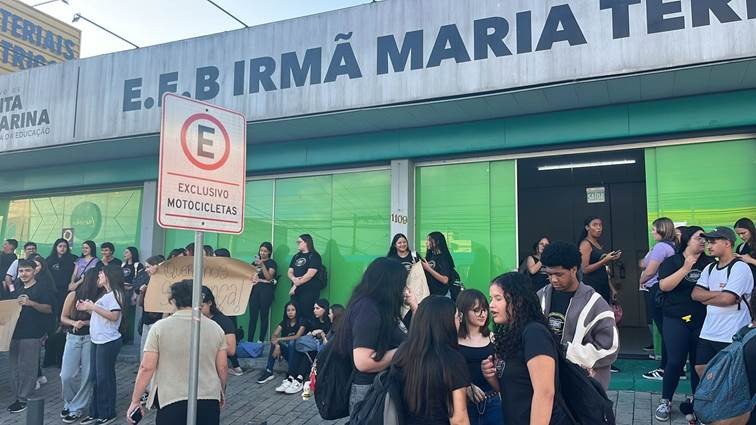0 Comentários Estudantes da rede estadual de SC exigem melhorias na infraestrutura de escola em manifestação na Palhoça